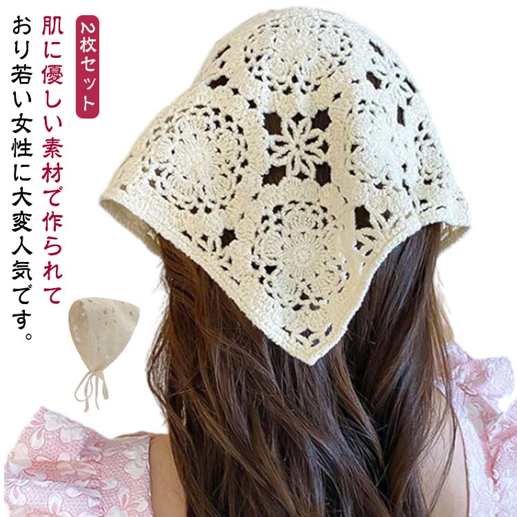バブーシュカ レース レディース 2枚セット! カチューシャ 2枚セット! バンダナ 透け感 花柄 三角巾 ヘッドドレス ガーリー ヘアバンド ヘアターバン ヘッドアクセサリー 柔らか おしゃれ 可愛い 小顔効果 カジュアル トレンド ヘアアクセ