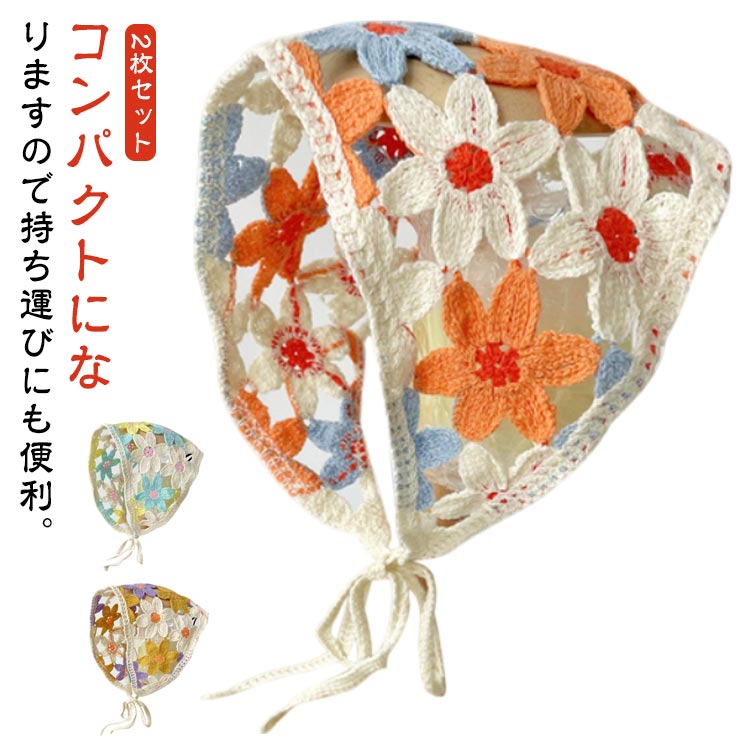 帽子 編み レトロ フレンチ 三角巾 バブーシュカ 頭巾 2枚セット!花柄 2枚セット!花柄 ニット ロリータ 小顔効果 ヘッドスカーフ フランスのレトロなバンダナ ヘアアクセサリー ヘアバンド ヘアターバン カチューシャ
