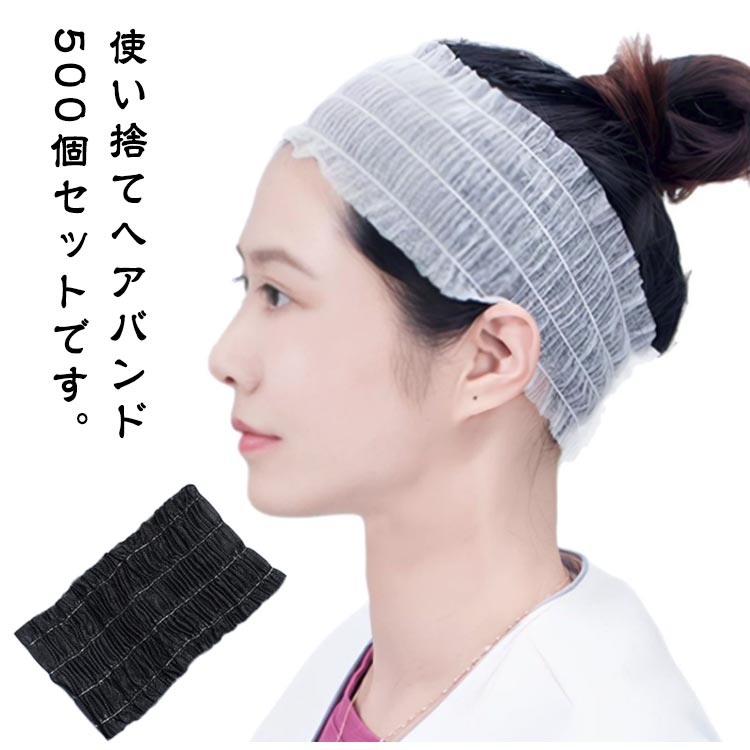 使い捨て ホテル スパ エステターバン 化粧 ヘアバンド 業務用 ヘアターバン 髪用 ヘアキャップ 個包装 ヘッドバンド メイク 伸縮性 使い捨て 業務用 500個入 不織布 黒 白 洗顔 髪染め エステ用品 サロン 美容院 旅行 入浴用