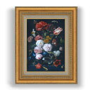 【油絵 直筆仕上げ】デ・ヘーム 花瓶と花 アートフレーム サイズ 額入りM 【油彩 布キャンバス 国内生産】 絵画 販売 静物画 511×418mm 複製画 送料無料 プレゼント ギフト 開店祝い 開業祝い 退職祝い 新築祝い リビング 玄関 モダン アートフレーム 壁掛け
