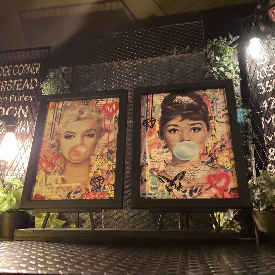2枚組「モンロー&ヘップバーン ポップアート」キャンバス製アートパネル(額入り) ブルックリンスタイル 男前インテリア アメリカンビンテージ BROOKLYN NEWYORK ポップアート アートパネル カフェインテリア アメリカンカジュアル VINTAGE 店舗什器 DandyLifeSpace