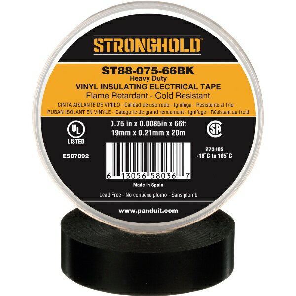パンドウイット|PANDUIT ストロングホールドStrongHoldビニールテープ耐熱・耐寒・難燃ヘビーデューティーグレード黒幅19.1mm長さ20mST88?075?66BL ST88-075-66BK3735