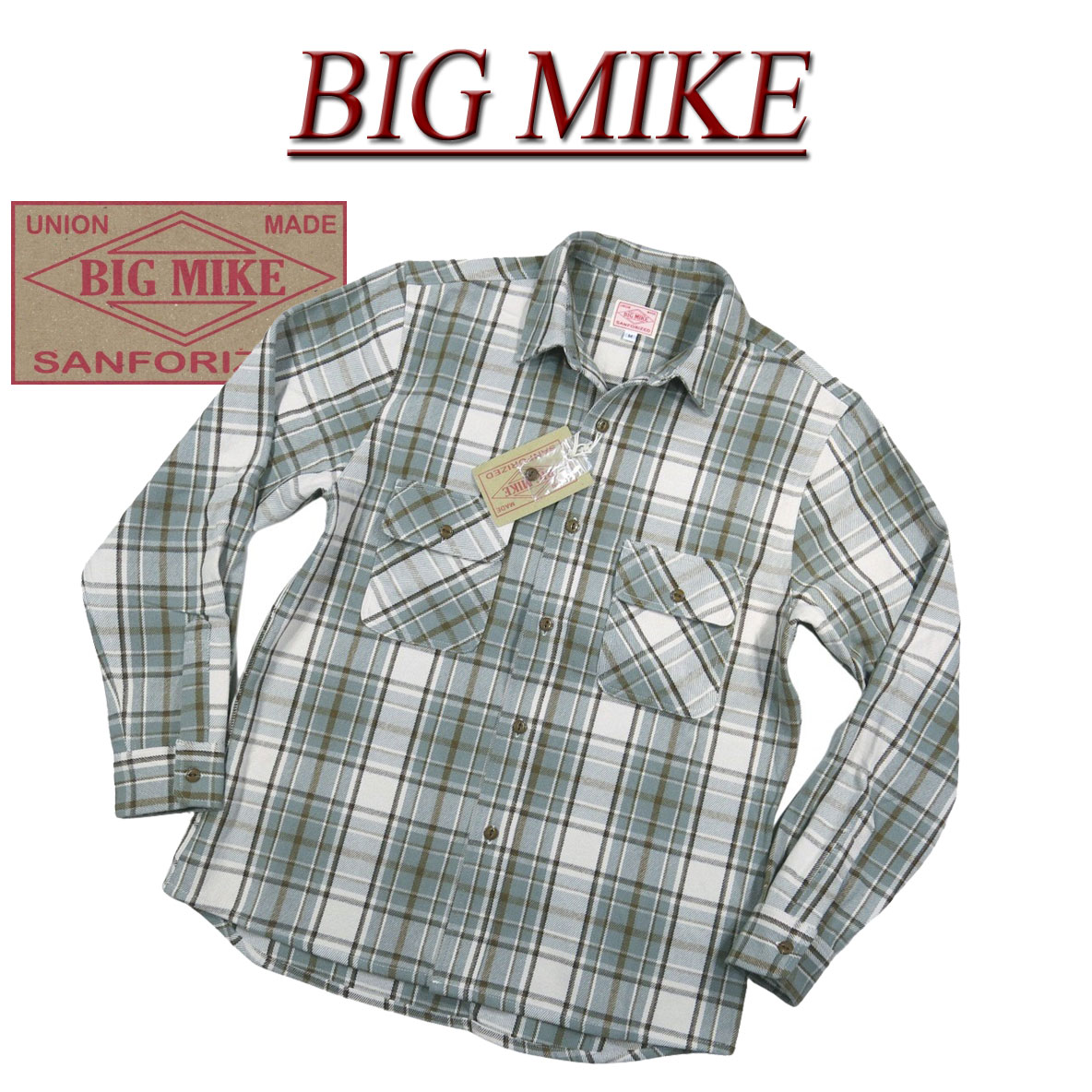 【4サイズ】 ad121 新品 BIG MIKE 復刻 長袖 オンブレチェック ヘビーネルシャツ 102135000 メンズ ビッグマイク HEAVY FLANNEL WORK SHIRTS フランネルシャツ ワークシャツ ヘビネル BIGMIKE Made in INDIA 【smtb-kd】