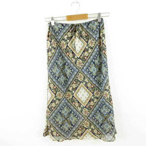 【中古】フェールジュジュ faire jou jou ひざ丈スカート 総柄 花柄 紺 ベージュ 38 *A196 レディース 【ベクトル 古着】 230220