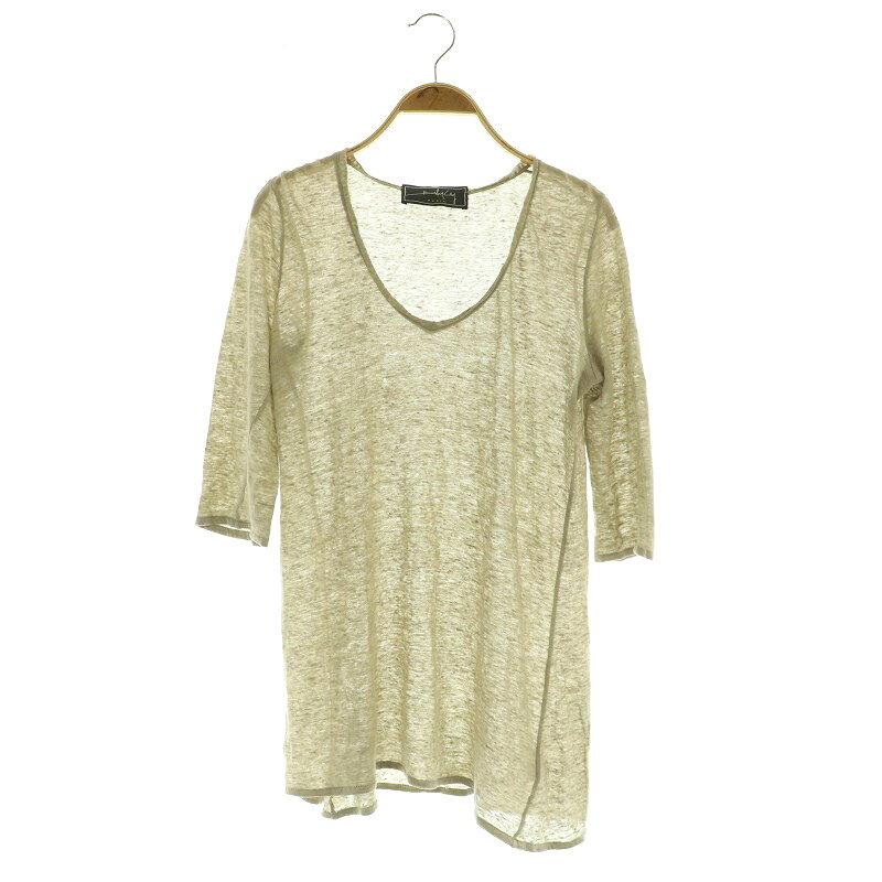 【中古】バーバララング BARBARA LANG リネン七分袖カットソー Uネック ロング JOURNAL STANDARD取扱 S ベージュ /MY ■OS ■SH レディース 【ベクトル 古着】 250530