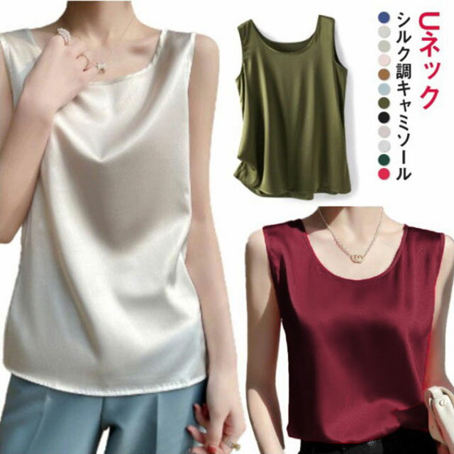 タンクトップ シルクサテン 夏 レディース サテンのベスト トップス 絹インナー インナー シンプル タンクトップ 春 秋 Uネック スーツインナー シルクインナー 保湿 シルク調キャミソール