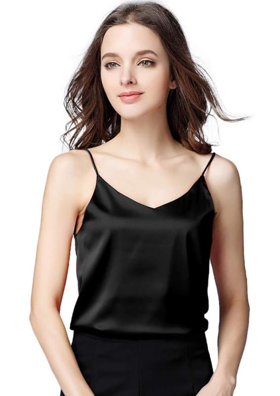 【送料無料】[Euyqs] シルク キャミソール Vネック シンプル サテンのベスト (ブラック, S)