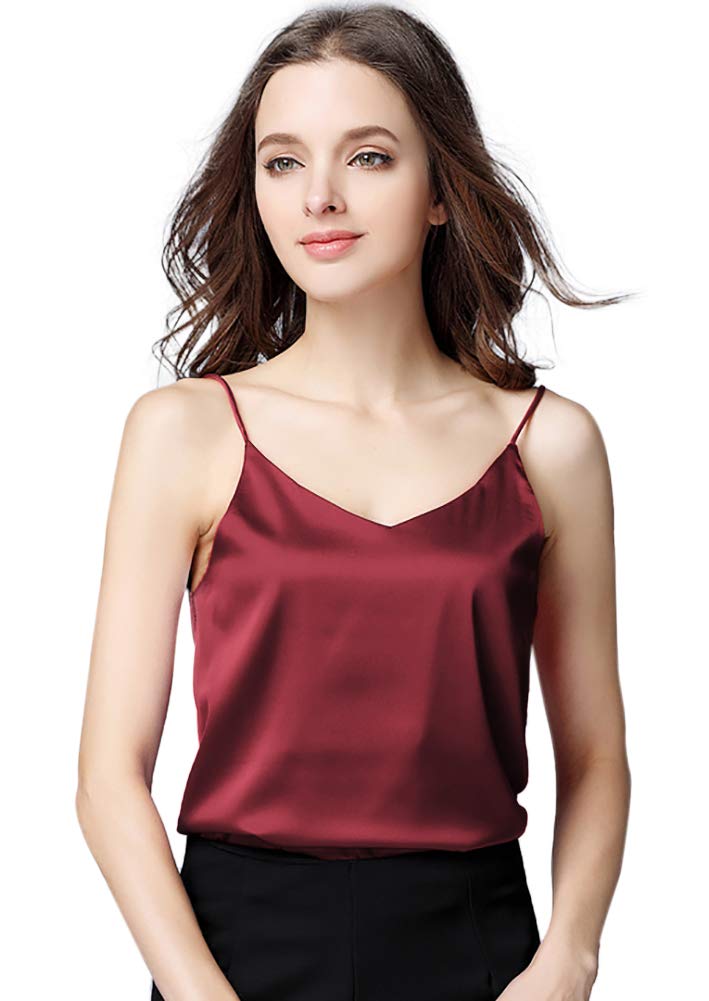 【送料無料】[Euyqs] シルク キャミソール Vネック シンプル サテンのベスト (ワインレッド, XL)