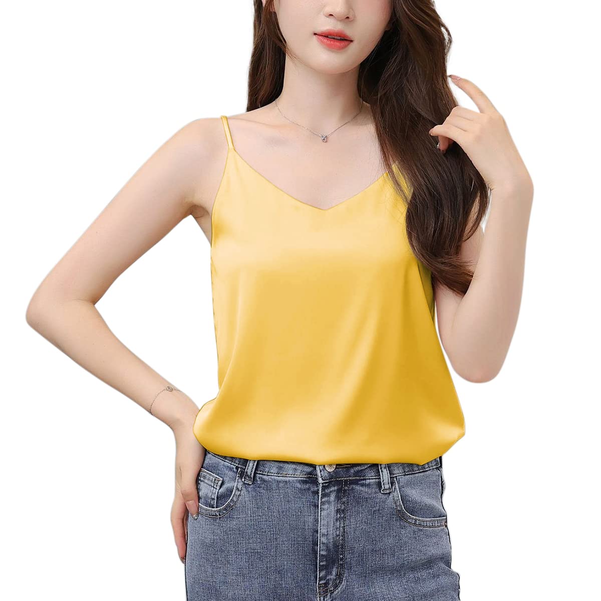 【送料無料】[Euyqs] キャミソール Vネック シンプル サテンのベスト (イェロー, L)