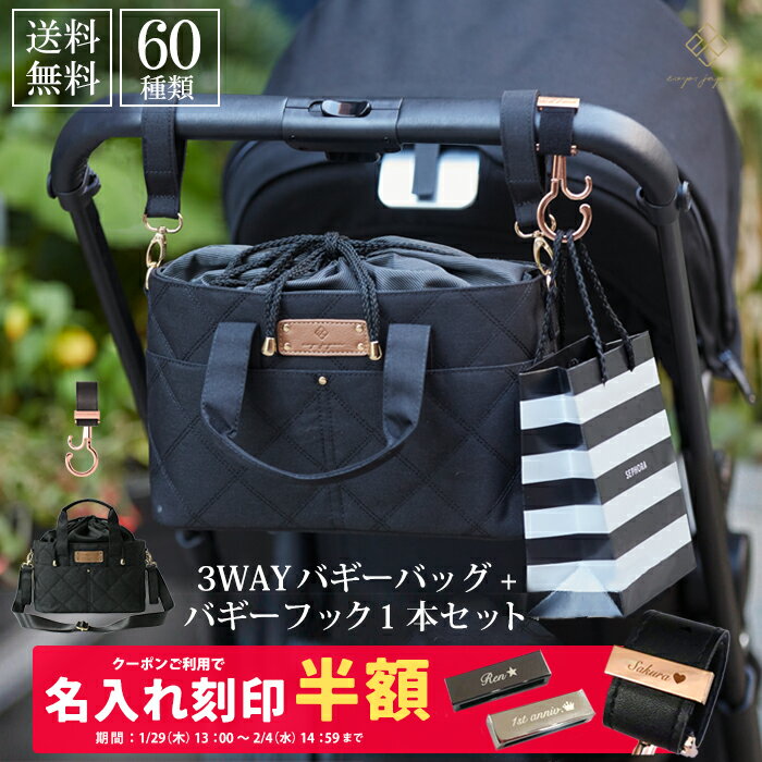 ベビーカーフック & ベビーカーバッグ 3way 名入れ刻印 バギーフック 1本 バギーバッグ ベビーカー フック ドリンクホルダー 小物入れ オーガナイザー ポーチ 出産祝い ショルダーバッグ ペットバギー ドッグカート シルバーカー