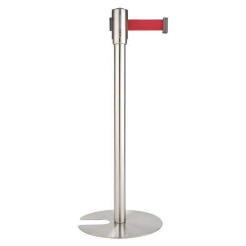 ベルトパーテーション AW 屋外対応 ナイロンベルト 3.6m ヘアライン ベルト赤 テラモト 案内 整列 誘導 仕切り お客様組立品 屋外でも活躍する 美しいヘアライン仕上げの3.6mナイロンベルトが、TERAMOTO(テラモト)のベルトパーテーションAWで登場 赤いベルトが目を引き、