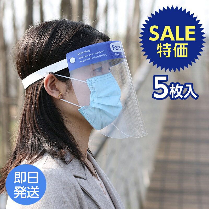 【期間限定SALE】フェイスシールド フェイスガード 5枚セット 保護シールド ウイルスブロック 飛沫 男女兼用 医療用 接客業 サロン 介護職 感染対策 透明シールド 保護マスク 水洗い 曇り止め加工 FDA認証 安い 特価 激安 即納 在庫あり fs5