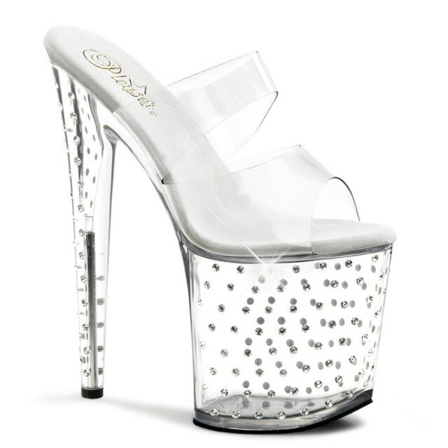 PLEASER【取り寄せ】プリーザー・ラインストーン厚底クリアダブルバンドミュール/品番:STARDUST-802/STDUS802/19cmヒール/20cmヒール/ダンスシューズ/衣装/ポールダンス/キラキラサンダル/レディース/靴/クリアサンダル/クリアミュール/クリアヒール/クリア/透明