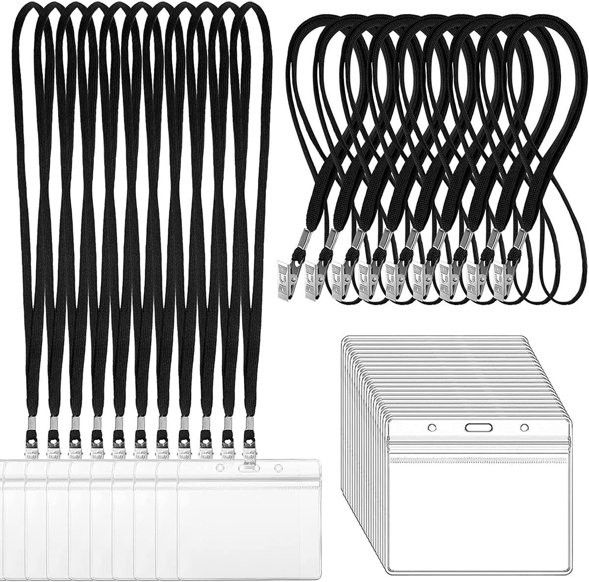 LEADINTOP ネームホルダー 30枚 名札ケース ネックストラップ 吊り下げ名札 イベント スタッフ パス 名刺 ID カード ホルダー 社員証 ケース 入れ 首下げ 展示会 透明 防水 セット 横型