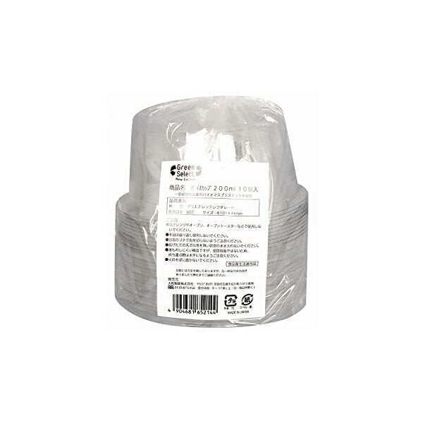 ●1組あたりサイズ(約)直径10.1×高さ4.4cm●容量(約)200ml●材質:ポリエチレンテレフタレート●製造国:日本●入り数:10組入・ブランド:大和物産(Daiwa Bussan)●一部植物性由来のバイオマスプラスチックを使用し、環境に配慮したフタ付きのプラスチック容器。●揚げたての天ぷら等を熱い状態のまま入れないこと。●密閉容器ではない為、持ち運ぶ際は水平になるよう注意する。●火のそばに置かない。●1組あたりサイズ(約)直径10.1×高さ4.4cm●材質:ポリエチレンテレフタレート●容量(約)200ml●耐熱温度:60℃・メーカー:大和物産・内容量(ミリリットル):200 ミリリットル・お手入れ:手洗いのみ・ブランド名:大和物産(Daiwa Bussan)・容量:200 ml