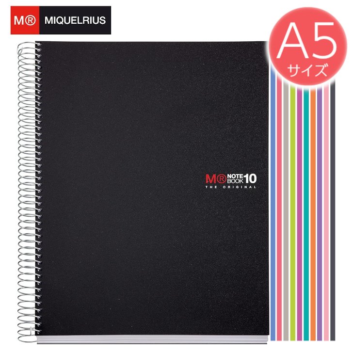 人気!【ミケルリウス 日本公式ショップ】ベーシック NB-10 MIQUELRIUS A5 リングノート BASIC 5mm方眼 20枚×10色 200枚 400ページ 70g/m2 ミシン目入り 2つ穴 スペイン かわいい おしゃれ シンプル ギフト ビジネス 学生海外 輸入 文具 分厚いノート 人気 <ポリプロピレン表紙>快適な書き心地でスケッチや図表にも最適なお洒落デザイン方眼ノート!カラーインデックスが便利でファイリングもできる!たっぷり200枚!400ページ! 5