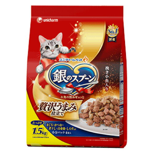 キャットフード 猫 カリカリ【1.5kg/1袋】1袋 6袋 セット 銀のスプーン 贅沢うまみ仕立て お魚づくし まぐろ・かつお・煮干し・白身魚・しらす入り ユニ・チャームペット ドライフード【猫 誕生日】【同梱A】shippotv