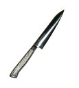 12cm 全長248mm 85g 背厚1.5mm 従来のソールナイフにない、しなやかさと切れ味の両立を実現しました。440Aをベースとしたグレステン鋼には、サブゼロ処理(超低温処理)をはじめ、さらに何段階にもわたる特殊熱処理を行っています。耐蝕性、耐磨耗性、耐熱・耐寒性、靱性(強度)、硬度の安定性(HRC58?59度)、切れ味の持続性など、品質を徹底追求して高度な機能を実現。へこみの部分に空気が入ることにより、刃離れの良さと、軽い切れ味を実現しました。切断時に側面にかかる密着抵抗を最小にしてあります。庖丁側面に密着しにくいので作業性が良く、切れ味が良く、しかも刃研ぎの面積がせまいため、非常に研ぎ易い設計です。AGL07012