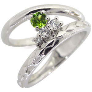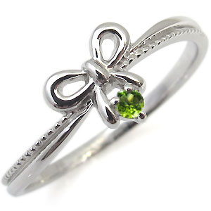 プラチナ 指輪 リボン 一粒 リング ペリドット ピンキーリング