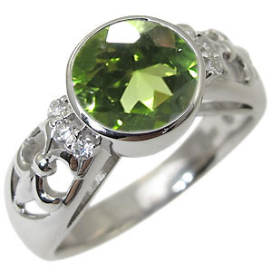 ペリドットリング K18PG/K18WG/K18YG(青金)3種類からお選びいただけます。ペリドット・天然ダイヤリングtypeAAA