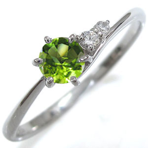 ペリドットリング プレゼント 一粒 K18 シンプル 婚約指輪