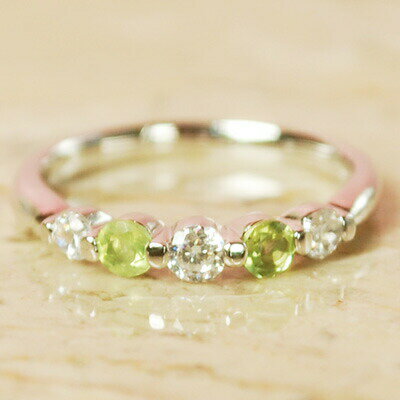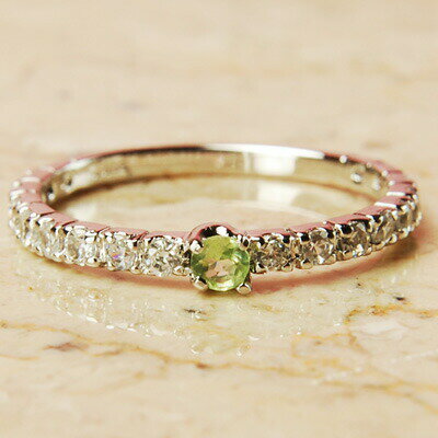 【エントリーでP10倍&クーポン&SS限定価格】天然ペリドット&ホワイトキュービックジルコニアハーフエタニティリング【8月誕生石】