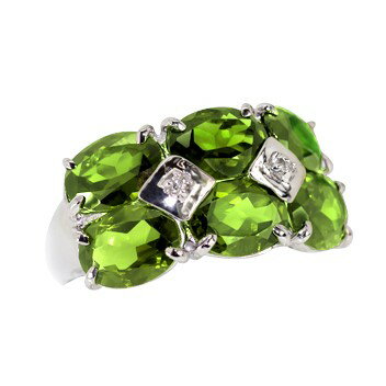 【エントリーでP10倍&クーポン&SS限定価格】天然ペリドット&ホワイトキュービックジルコニアファイブストーンリング 8月誕生石