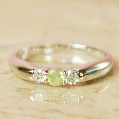 【エントリーでP10倍&クーポン&SS限定価格】天然ペリドット&ホワイトキュービックジルコニアスリーストーンリング 天然石 8月誕生石 スリーストーン ピンキーリング