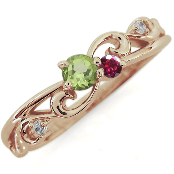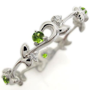 ペリドット 唐草 エンゲージリング 18金 婚約指輪 メモリアル リング