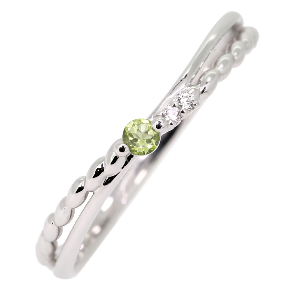 色とカタチを組み合わせて楽しめる、重ね付けリング「パレット」シリーズ。 1月から12月まで、全ての誕生石が揃っていますので、 大切な人の誕生石と組み合わせてもお楽しみいただけます。 もちろん、シンプルに1つでも愛らしいリングです。 腕は人気のミル打ち仕上げ。職人によるこだわりのミル打ちが アンティークな雰囲気を添えます。愛らしい存在感をもつリングです。 〜8月の誕生石ペリドット〜 【宝石言葉】 夫婦愛・幸福・運命の絆 【宝石の魅力】 透きとおるように美しく生命力溢れるオリーブ色のペリドットは、 明るく輝き、幸せな未来を予感させてくれます。 美しい輝きは夜の暗闇でも変わらず、闇の中の灯りによって いっそう魅力的な輝きを放つので、昼間はもちろん夜のお出かけにも最適です。 いつまでも変わらぬ夫婦の絆、愛情を守ってくれると言われています。