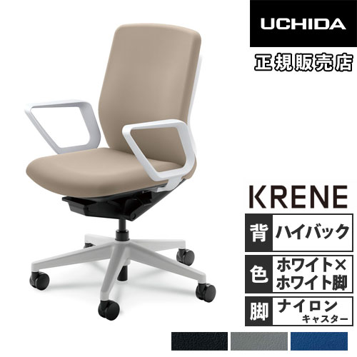 【最大1万円クーポン11/20-26】 【組立設置無料】 内田洋行 クレネ オフィスチェア ハイバック ホワイトシェル リング肘 ウレタンキャスター ビニールレザー張り 椅子 KA-320WBRA PU 5-377-624