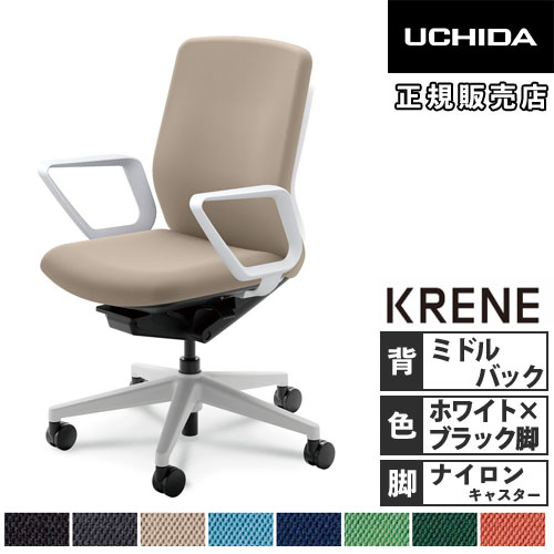 【最大1万円クーポン11/20-26】 【組立設置無料】 内田洋行 クレネ オフィスチェア ミドルバック ホワイトシェル リング肘 ナイロンキャスター 布張り チェア 日本製 KA-120WBRA PA 5-377-521