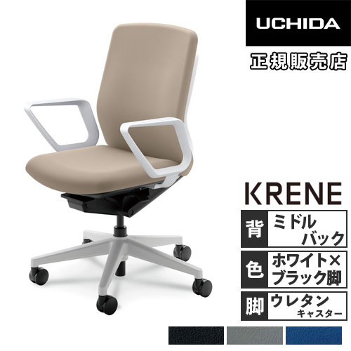 【最大1万円クーポン11/20-26】 【組立設置無料】 内田洋行 クレネ オフィスチェア ミドルバック ホワイトシェル リング肘 ウレタンキャスター ビニールレザー張り KA-120WBRA PU 5-377-524