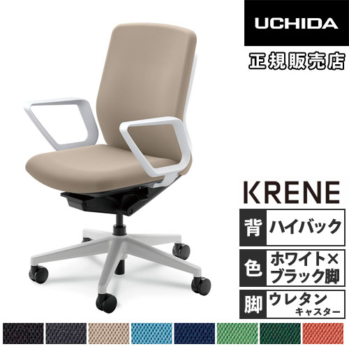 【最大1万円クーポン11/20-26】 【組立設置無料】 内田洋行 クレネ オフィスチェア ハイバック ホワイトシェル リング肘 ウレタンキャスター 布張り 作業チェア 日本製 KA-320WBRA PU 5-377-622