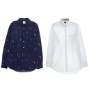 新着【中古】美品 ポールスミス ジャガード ホワイト ストライプ ドレス シャツ & テイラー プリント マルチカラー 総柄 シャツ 2枚セット L メンズ