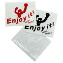 テレビCMでもお馴染みの「Enjoy It!」ステッカーです。 貼付け後、文字だけが残る抜き文字タイプなので貼る場所を選びません!ボディーや窓ガラスなど、ステッカーチューニングにオススメ。 サイズ:たて13cm×横16cm。 カラー:レッド、ブラック、ホワイト