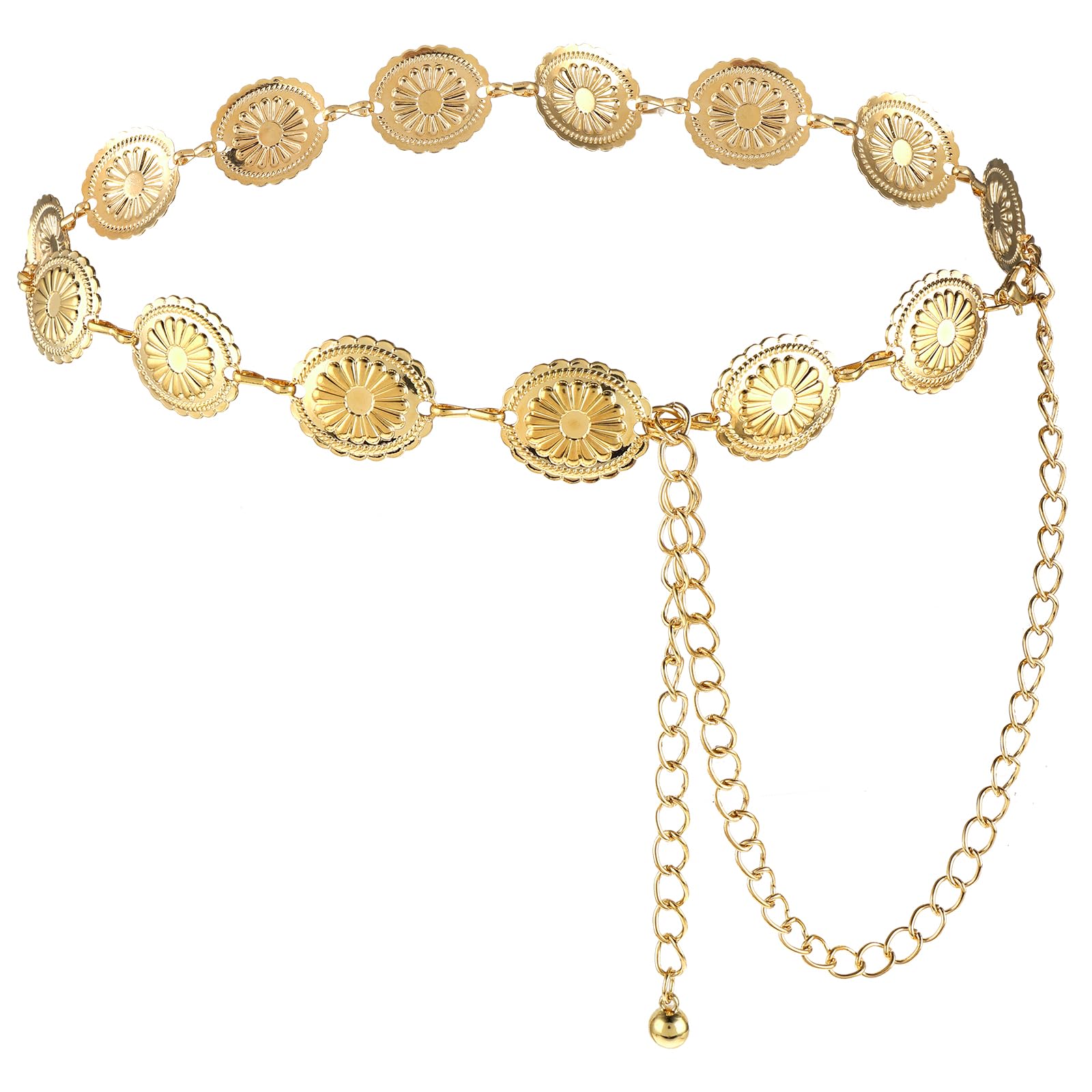 女性用ウエスタンベルト チェーンベルト コンチョベルト ゴールドウエストチェーン カウガールベルト ウエストベルト カントリーベルト ボーホーベルト ドレスジーンズ用、ゴールド、ワンサイズ, ゴールド,