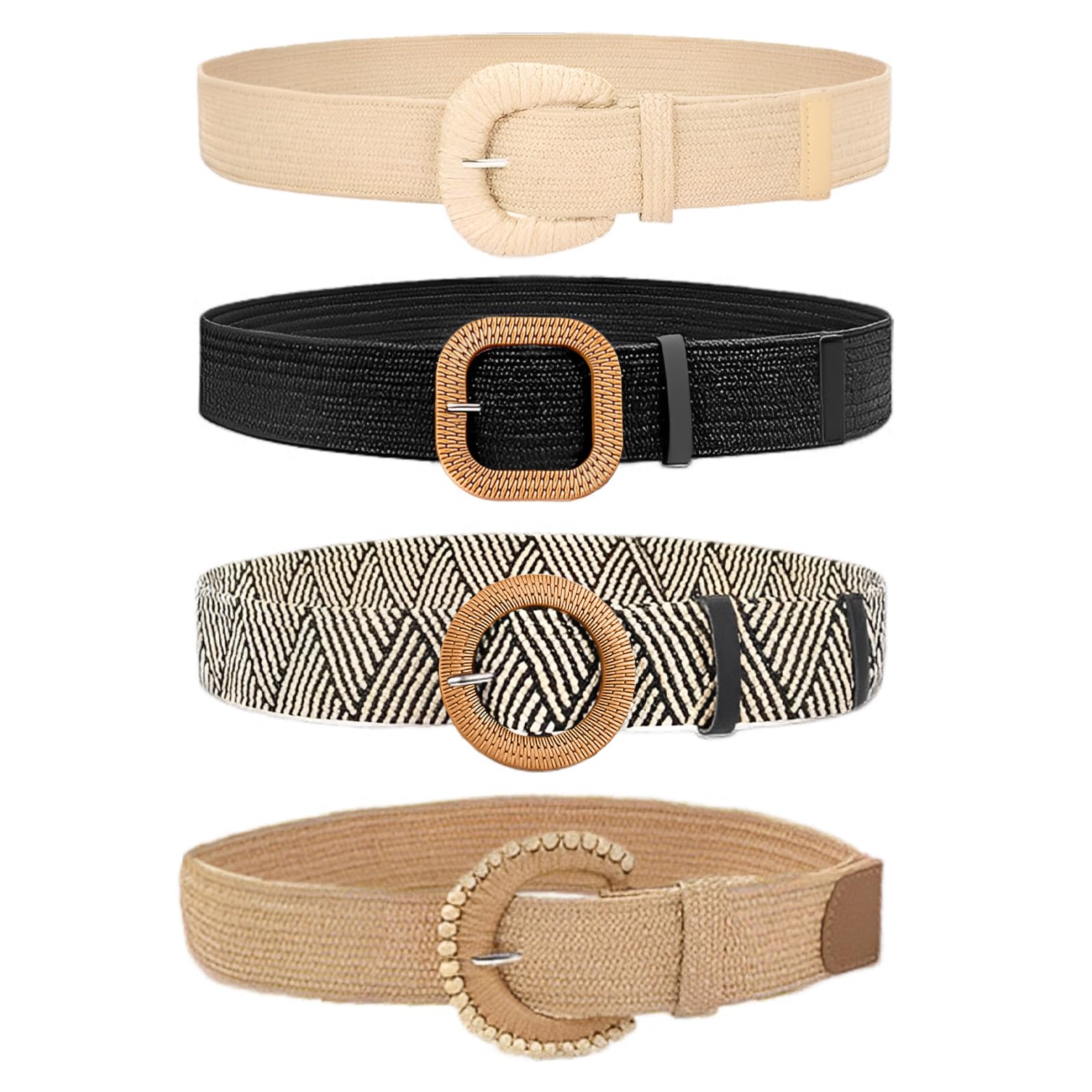 女性用織物ベルト、伸縮性ストローベルト ボーホーベルト 女性用サマーベルト、籐製チャンキーベルト レディース、ジーンズドレス用ウエストレディースベルト、マルチ、ワンサイズ, マルチ,