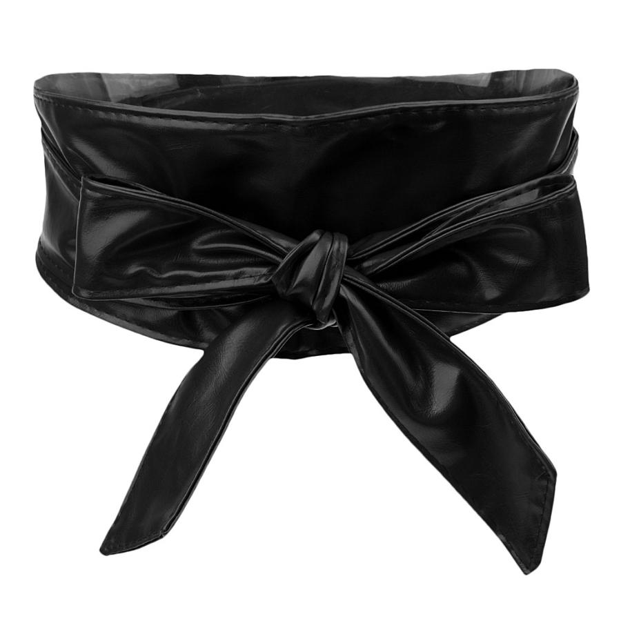 女性 レースアップ ウエストバンドハイ ウエスト ワイド コルセット ボホー ベルト PUレザー 全9色 - ブラック
