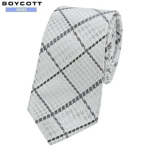 SALE大特価【BOYCOTT】ボイコット ハウンドトゥース×チェック シルクネクタイ 就活 ギフト プレゼント ブランド おしゃれ 銀『19/7/2』110719 20.03sage【送料無料】