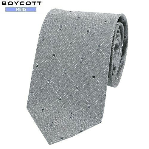 SALE大特価【BOYCOTT】ボイコット スクエアドット刺繍 シルクネクタイ 就活 ギフト プレゼント ブランド おしゃれ グレー『19/7/2』110719 20.03sage【送料無料】