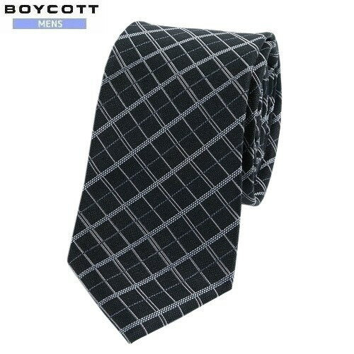 SALE大特価【BOYCOTT】ボイコット チェック刺繍 シルクネクタイ 就活 ギフト プレゼント ブランド おしゃれ 黒『19/7/1』050719 20.03sage【ネコポスで送料無料】