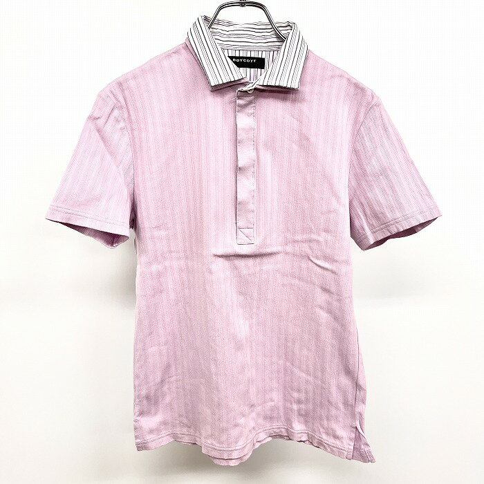 【楽天スーパーSALE限定!! \★35%OFF★/対象商品|12月4日(木)20時00分〜12月11日(木)01時59分まで】【中古】BOYCOTT ボイコット 2 メンズ ポロシャツ Tシャツ生地 リブカットソー レイヤードカラー ストライプ フライフロント 半袖 綿100% パープル