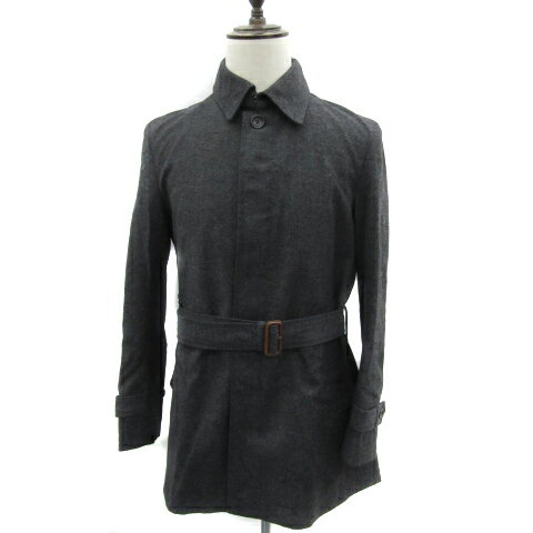 【中古】ボイコット BOYCOTT ステンカラージャケット ミドル丈 ヘリンボーン柄 ウエストベルト付き ウール 2 ダークグレー /YS18 メンズ 【ベクトル 古着】 240924
