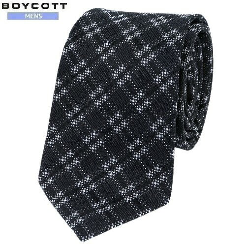 SALE大特価【BOYCOTT】ボイコット シャドーチェック シルクネクタイ 就活 ギフト プレゼント ブランド おしゃれ 黒『19/7/1』050719【ネコポスで送料無料】