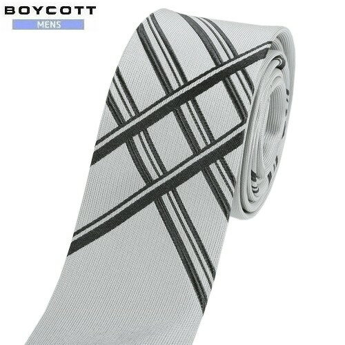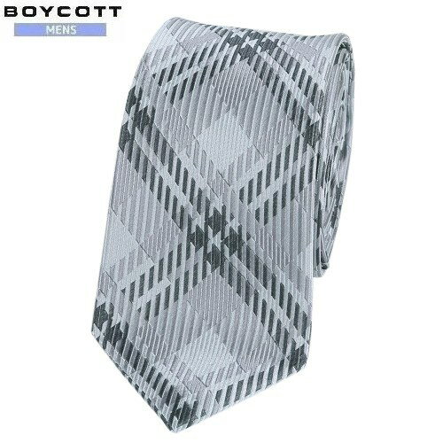 SALE大特価【BOYCOTT】ボイコット チェック シルク ナロータイ(ネクタイ) 銀『19/7/3』180719 20.03sage【ネコポスで送料無料】