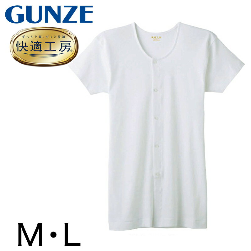 【11/25は抽選で最大100%Pバック】グンゼ 快適工房 紳士 半袖ボタン付き 前開きシャツ M・L (メンズ GUNZE 綿100% コットン100 男性 下着 肌着 インナー 白 ベージュ やわらか 日本製)