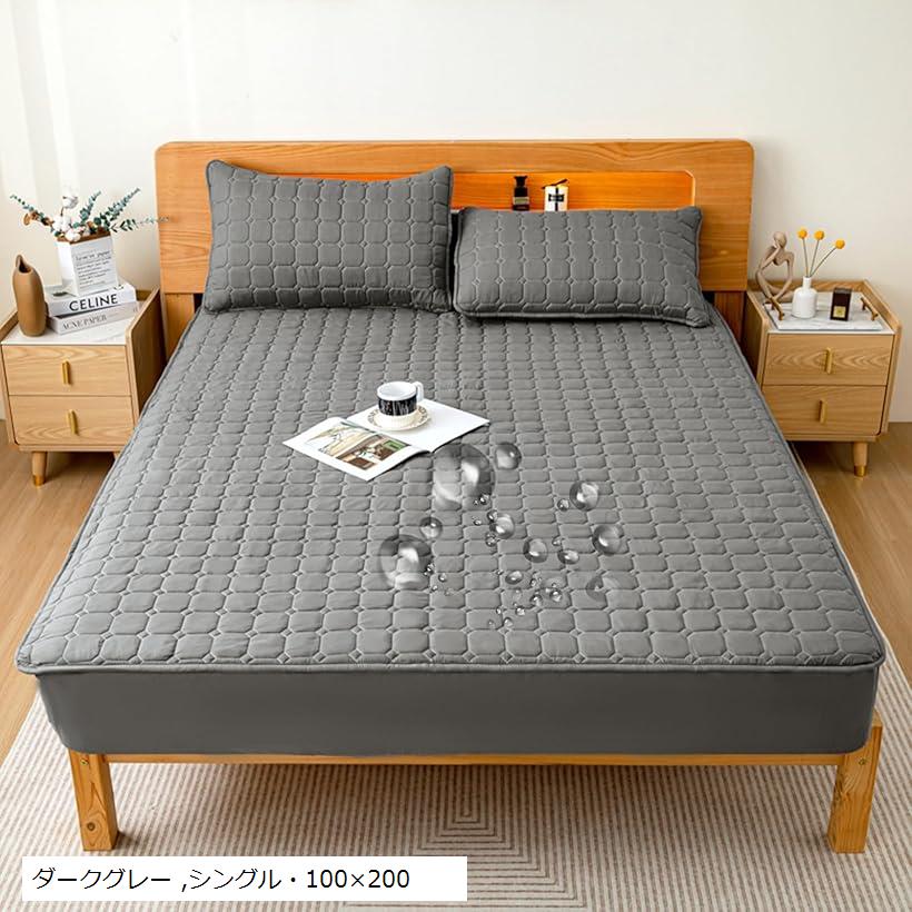 防水シーツ ボックスシーツ 三層構造 マットレスカバー 敷きパッド ベッドカバー ベッドパッド おねしょシーツ 介護シーツ ベビー用防水シーツ 敷き布団カバー 全周ゴム付き 着脱簡単 吸汗速乾 (ダークグレー, シングル・100x200)