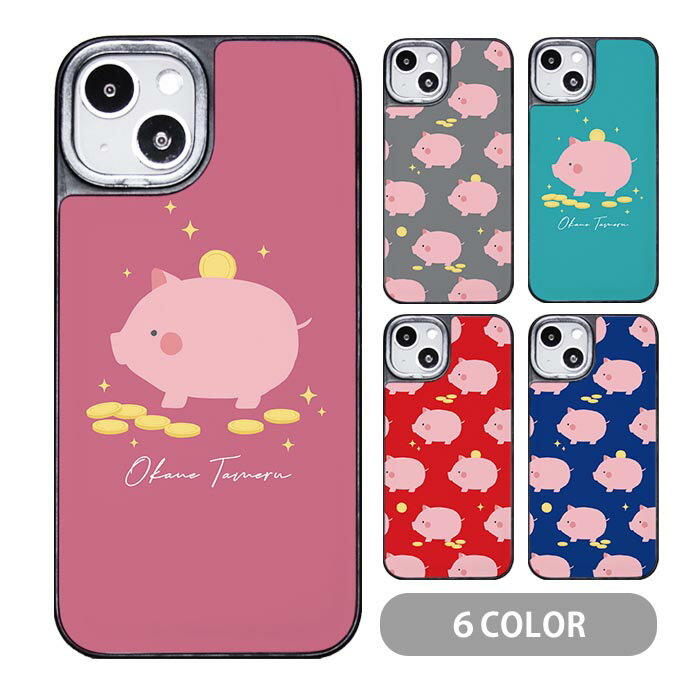 スマホケース ミラー 鏡面 ラウンド マイクロブタ ミニブタ 貯金箱 子豚 豚のちょきん箱 コイン お金 iphone13 iphone12 pro iphone12mini iphone11 iphoneXR iphone8 iPhoneケース TPU ガラスケース オシャレ かわいい 可愛い 背面ガラス 強化ガラス TPU ハードケース