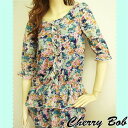 最終値下げ ローウエスト カラフルフラワー ティアードフリル 5分袖 チュニックワンピ フリルブラウス